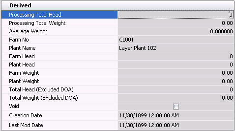 if Shift No is entered. The remaining data is derived from the Whole Birds