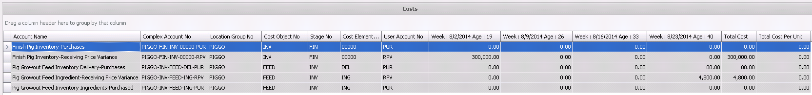 In - will not display costs for hogs transferred into the entity