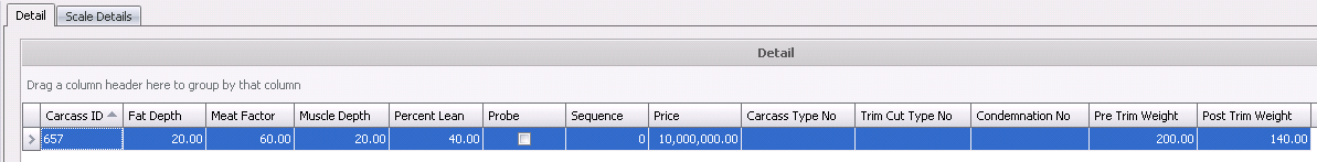 Weight field, enter the weight of the carcass after trimming,