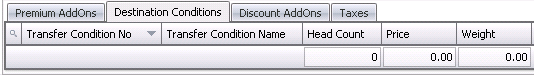 Based on a setup switch, the Destination Conditions tab may be required. If the option is selected, the Destination Conditions must be completed and balanced to the units and price for the line detail. The Destination Conditions are created in Admin>Business>SMTS>Definitions>Transfer Conditions.